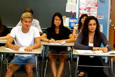 Постарайтесь садиться как можно ближе к учителю. Есть несколько причин, чтобы сделать это: во-первых, это показывает вашу заинтересованность. Во-вторых, так проще услышать, что говорит учитель и перенести записи с доски в тетрадь. В-третьих, вы оказываетесь на "огневой" линии учительского опроса, что пускай и немного пугает, но, в целом, имеет положительный эффект т.к. способствует вовлечению в классную дискуссию. И в-четвертых, наименее усердные ученики обычно садятся на задние ряды, откуда их не так хорошо видно и где они могут беспрепятственно болтать друг с другом. Так как ваша цель стопроцентно выкладываться на уроке, эти места не очень подходят для ее реализации.