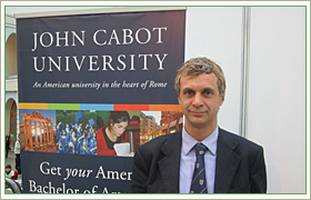 - Добрый день, Андреа. Судя по выставочному стенду, Ваш университет - настоящая находка для тех, кто не только ищет престижного американского образования, но также хочет жить в одном из красивейших городов Европы.- Здравствуйте. Действительно, John Cabot University - это полностью аккредитованный американский университет, расположенный в самом центре Рима. Единственное образовательное учреждение такого рода в Италии. JCU - уникальная возможность получить американскую степень бакалавра, не уезжая на другой континет.
