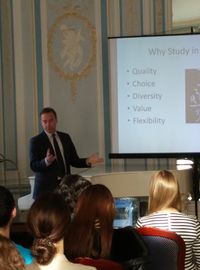 13 апреля 2016 года состоялась презентация Бюро международных образовательных программ “Прямой разговор”, посвящённая возможностям обучения в лучших университетах США, в том числе государственных и с отделениями в Европе, где стоимость обучения варьируется от $3000 до $35000 в год. Участники семинара узнали много нового о системе высшего образования в США и порядке оформления визы, получили информацию о доступных и качественных вузах страны, а также скидках, стипендиях и стажировках в них, а также задали свои вопросы представителям университетов и менеджерам Бюро “Прямой разговор”.